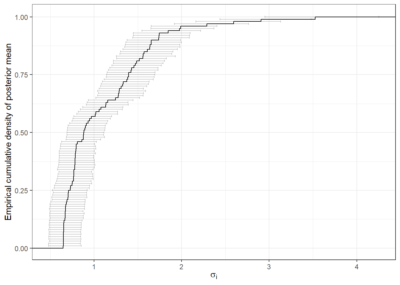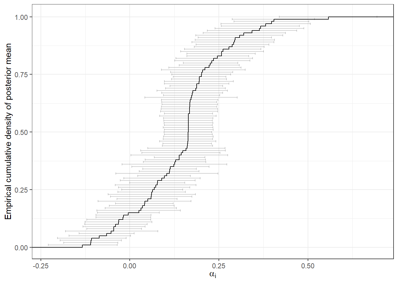 +ylab("Empirical cumulative density of posterior mean")